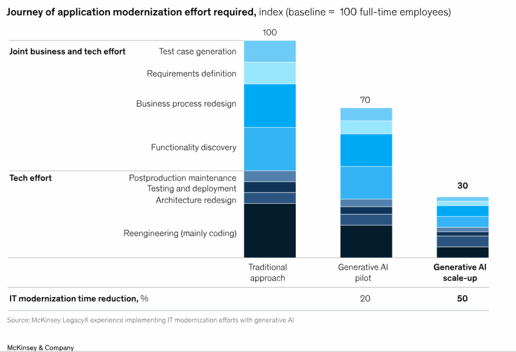 When prerequisites such as clean data and API-ready systems are satisfied, clients see modernization accelerated by a factor of 40-50% compared to traditional methods.